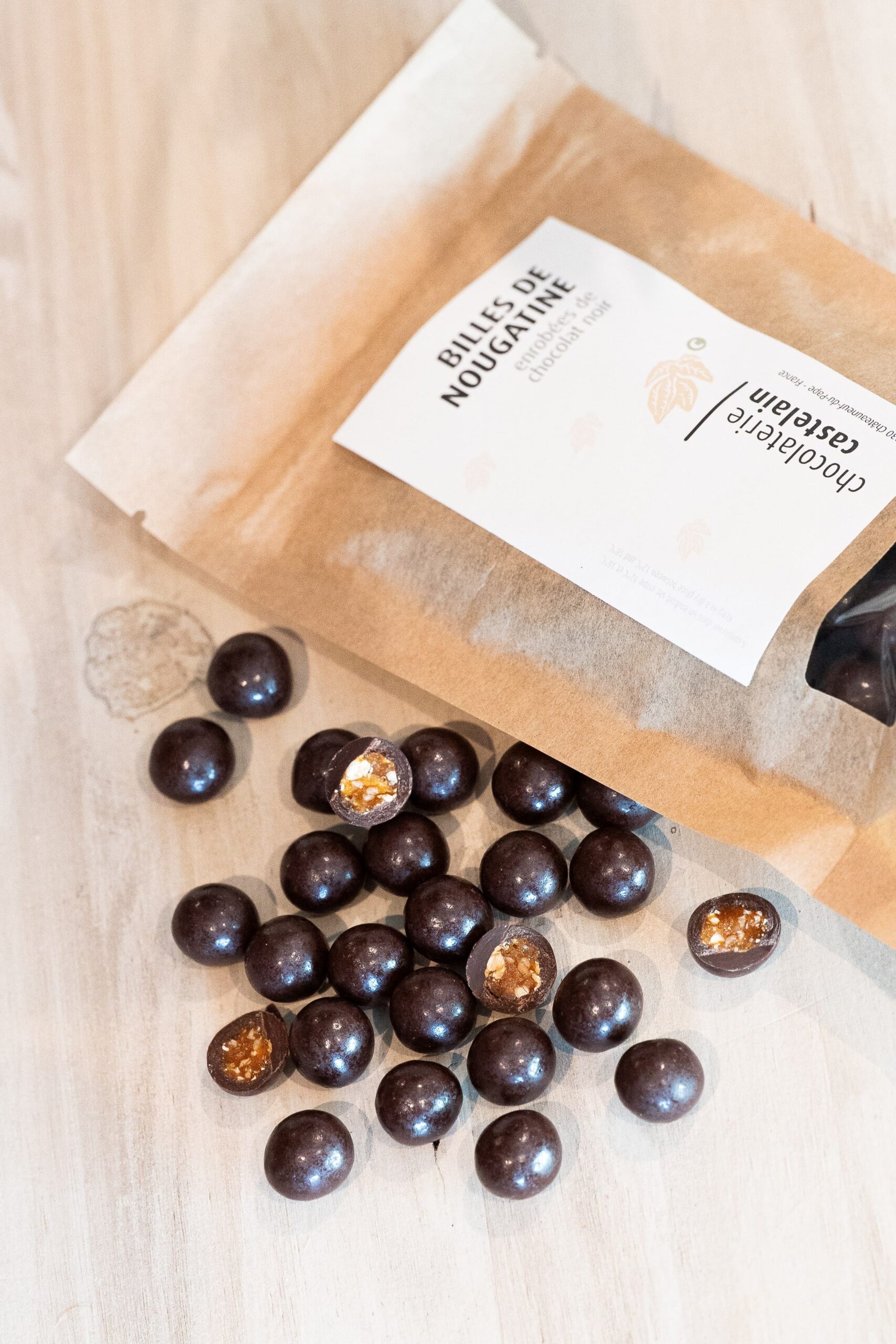 Billes de Nougatine enrobée de chocolat Noir -200g